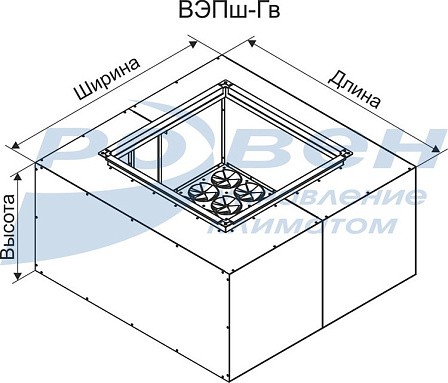 ВЭПш - напольный в рабочей зоне, потолочный с вертикальным подводом воздуха через воздуховод прямоугольного сечения.